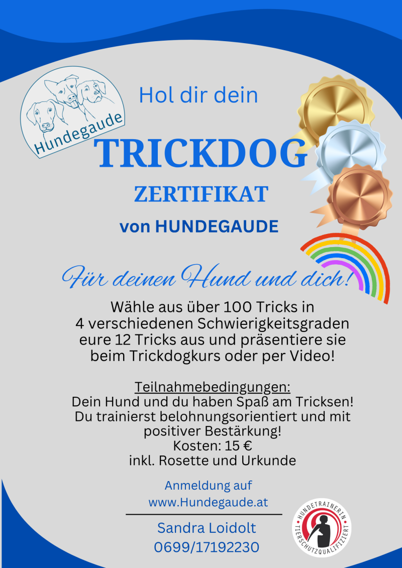 Hast du Spaß daran, deinem Hund neue Tricks beizubringen und gemeinsam Zeit zu verbringen? Mit dem Hundegaude Trickdog Zertifikat kannst du die Fortschritte deines Vierbeiners dokumentieren und zeigen, was ihr zusammen erreicht habt!